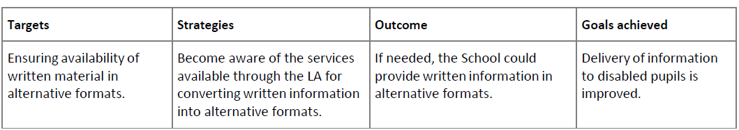• improve the delivery of information to pupils, staff, parents and visitors with disabilities.