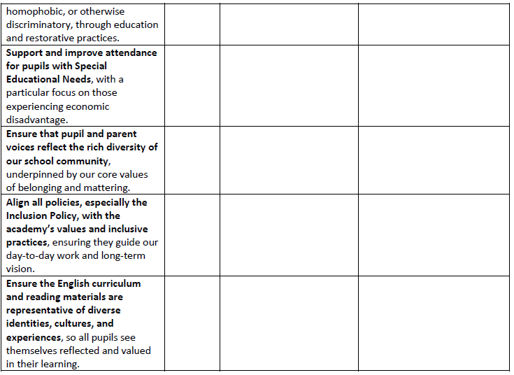 We are committed to advancing equal opportunities for all and eliminating discrimination on any basis, including disability, ethnicity, sex, gender reassignment, age (except pupils), marriage and civil partnership, pregnancy and maternity, sexual orientation, and religion or belief (defined as Protected Characteristics) so that equality, diversity and inclusion (EDI) underpin all we do.